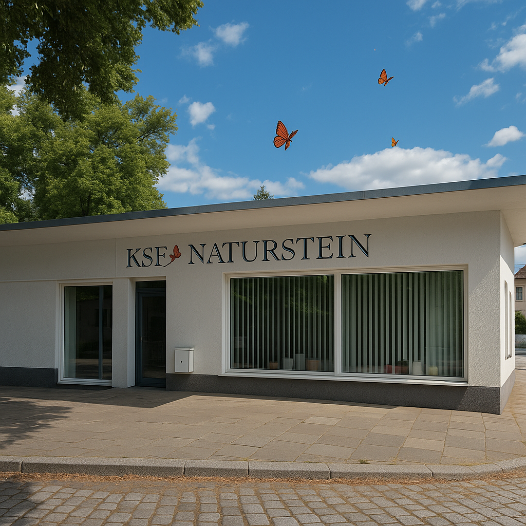 Vor Ort erwarten Sie zwei separate Gebäude: unser Service-Empfang für Beratung und Kundenkontakt sowie unsere Produktionsstätte mit Natursteinen.